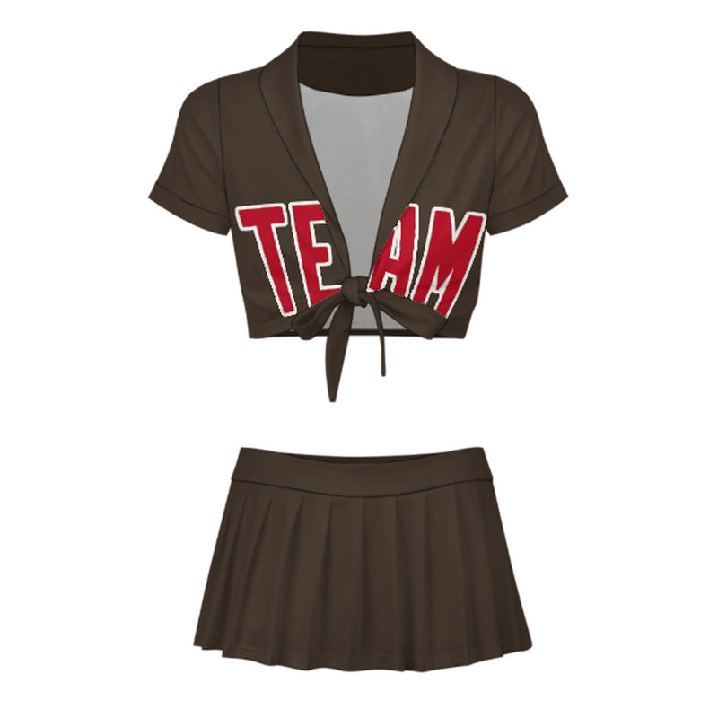 Completo sportivo e femminile da cheerleader in poliestere traspirante con taglio aderente, ideale per spettacoli, feste e regali.