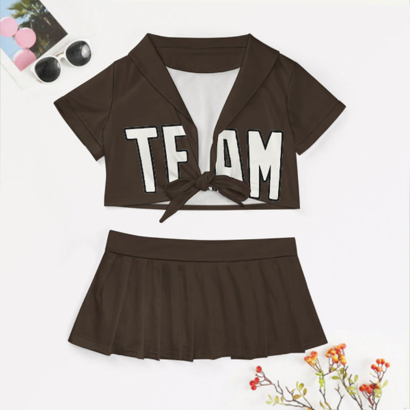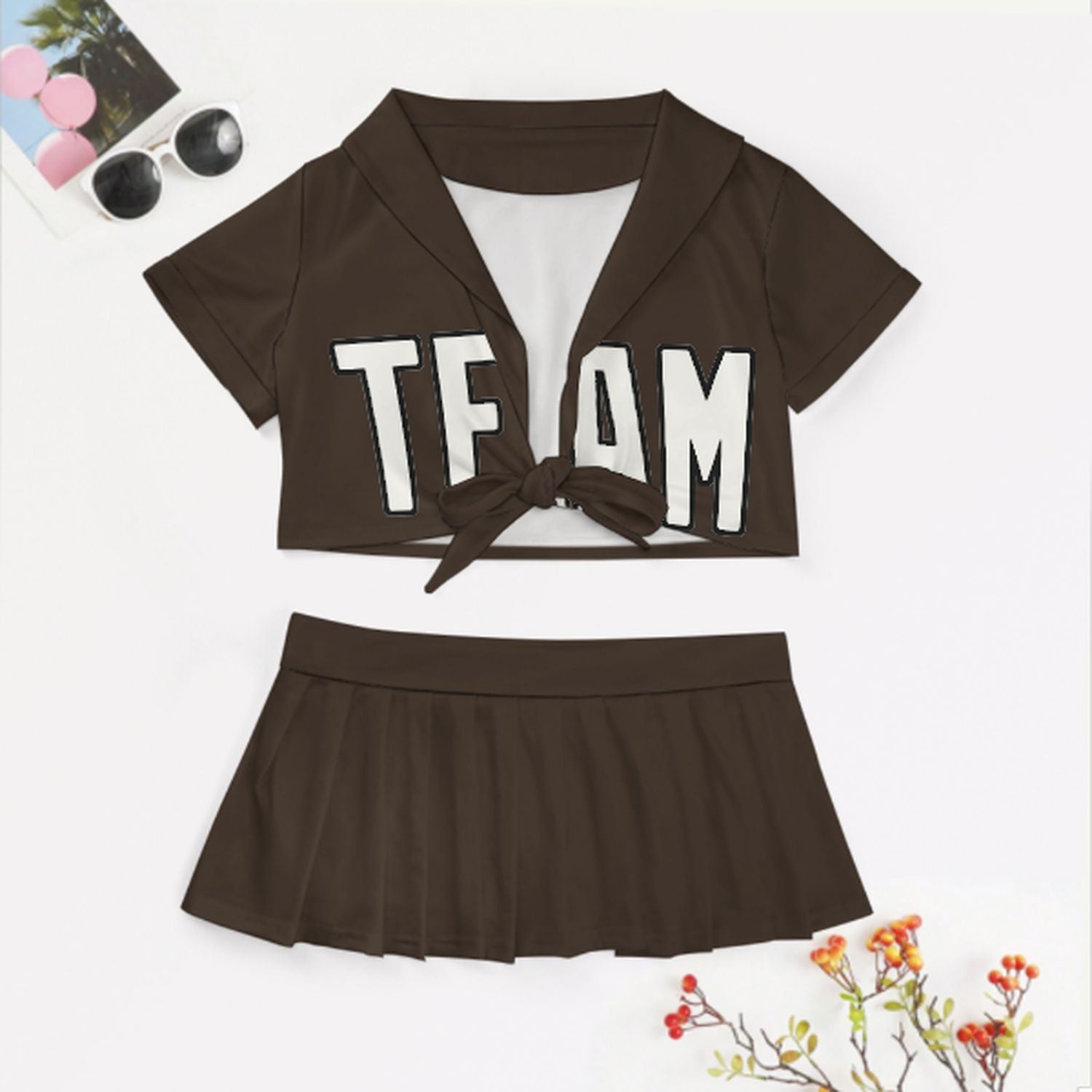 Completo sportivo e femminile da cheerleader in poliestere traspirante con taglio aderente, ideale per spettacoli, feste e regali.