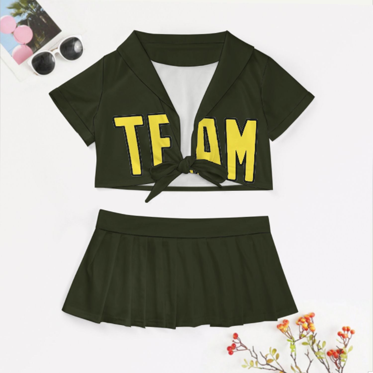 Completo da cheerleader personalizzato color oliva scuro e giallo pallido