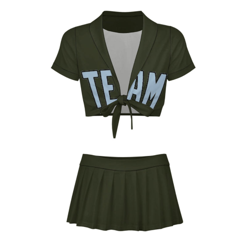 Completo da cheerleader personalizzato verde oliva scuro e azzurro
