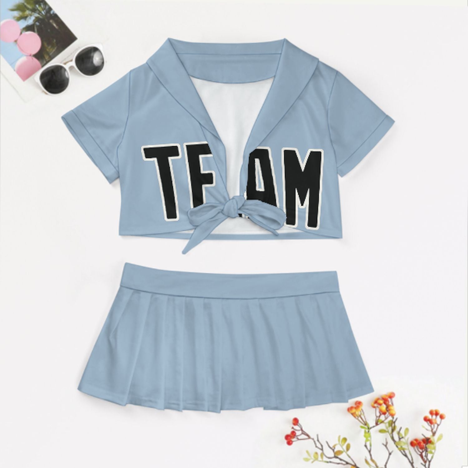Completo sportivo e femminile da cheerleader in poliestere traspirante con taglio aderente, ideale per spettacoli, feste e regali.