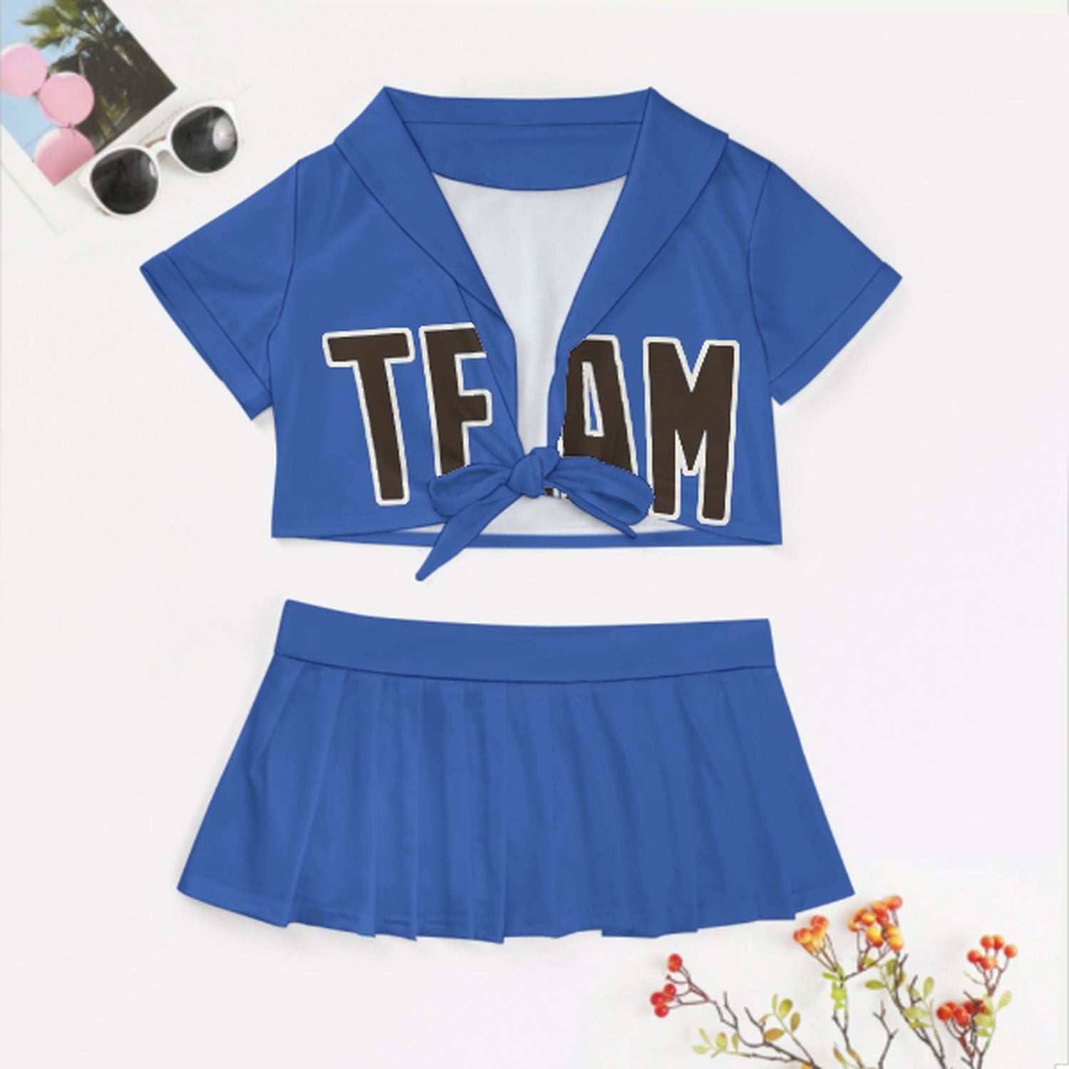 Completo sportivo e femminile da cheerleader in poliestere traspirante con taglio aderente, ideale per spettacoli, feste e regali.