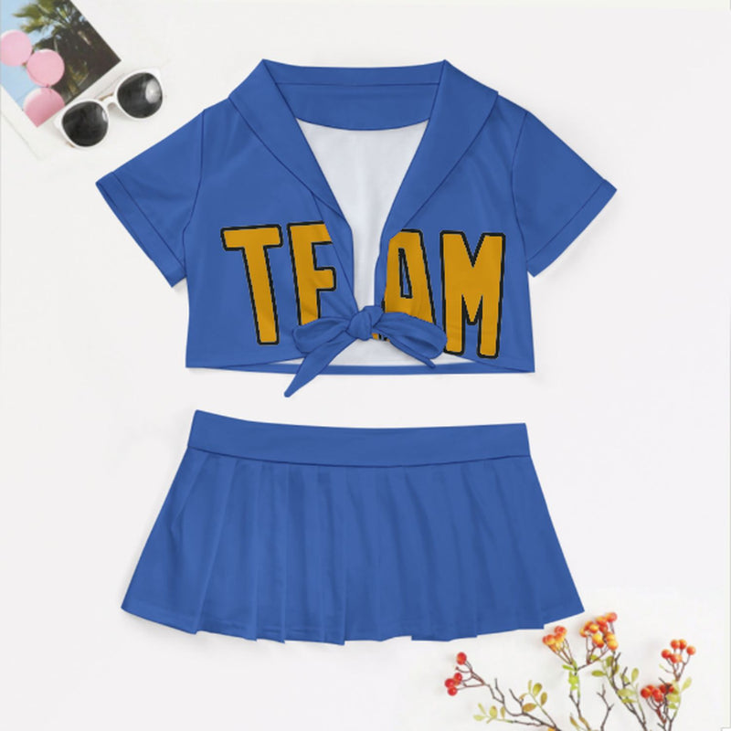Completo da cheerleader personalizzato azzurro cielo e giallo