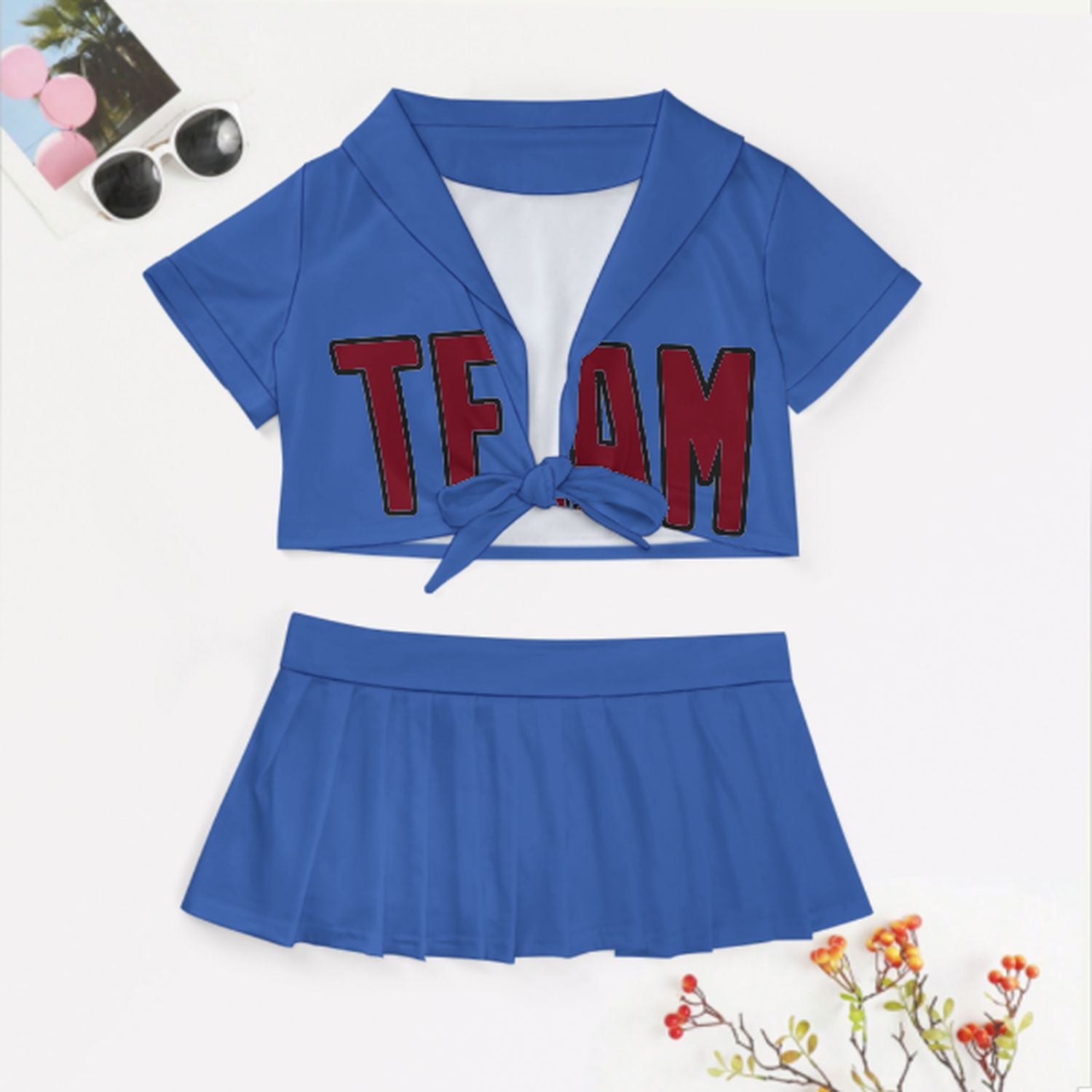 Completo da cheerleader personalizzato blu cielo e rosso cremisi