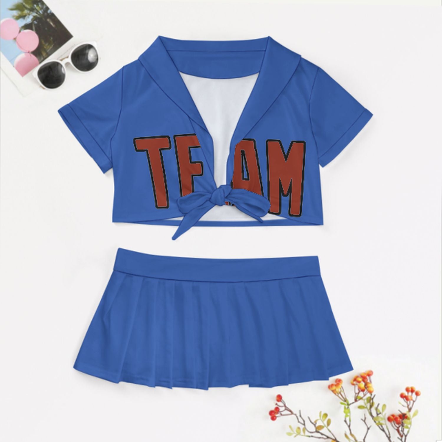 Completo da cheerleader personalizzato blu cielo corallo rosso