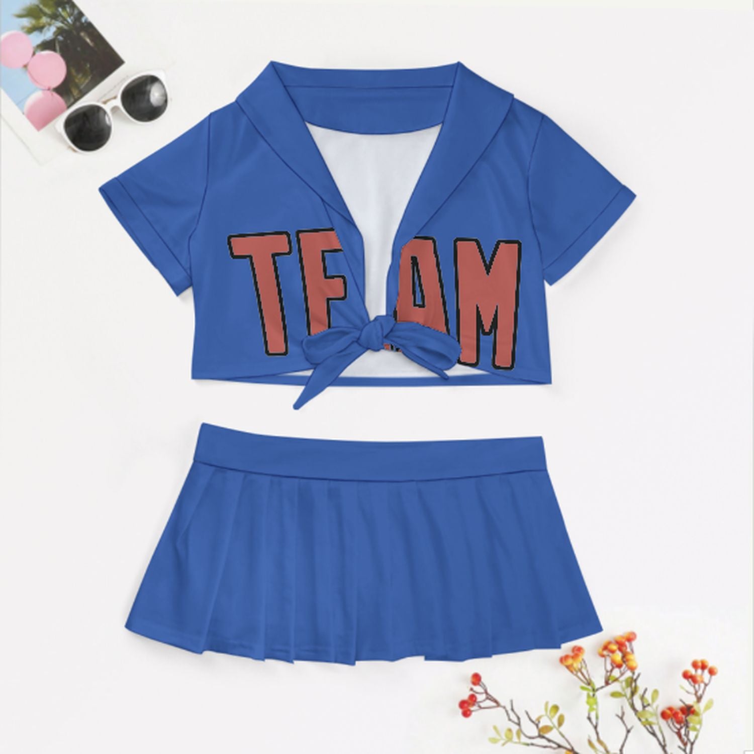 Completo da cheerleader personalizzato con rosa color rame e azzurro cielo