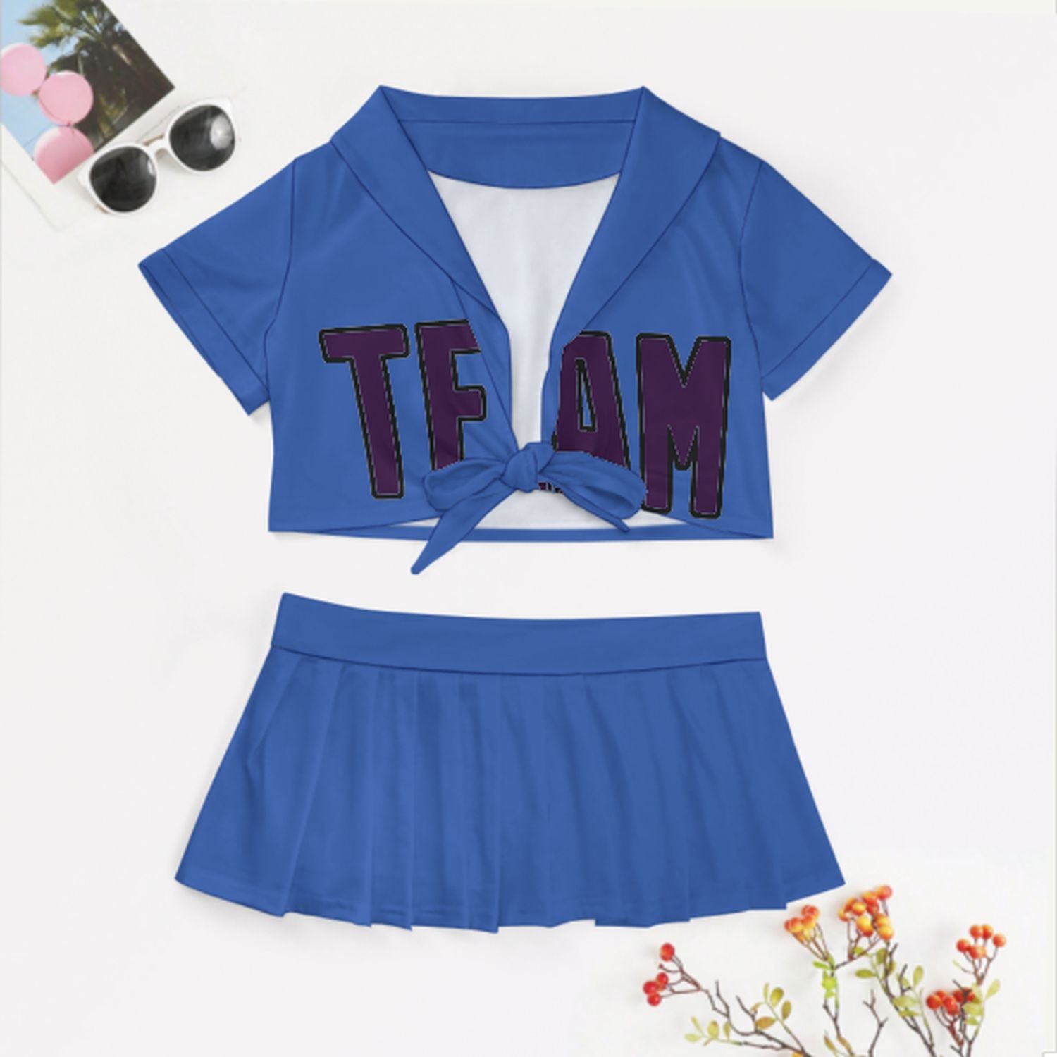 Completo da cheerleader personalizzato azzurro cielo e viola
