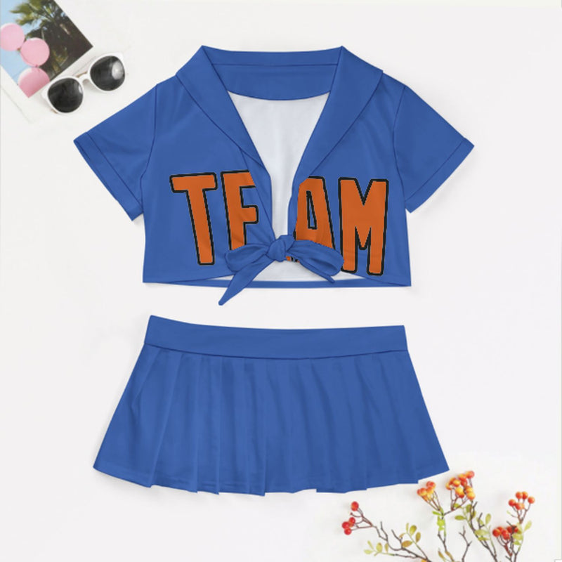 Completo da cheerleader personalizzato azzurro cielo e arancione