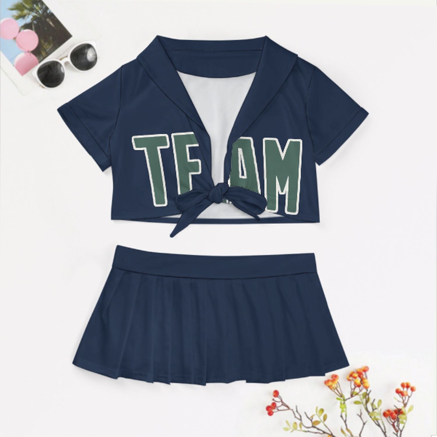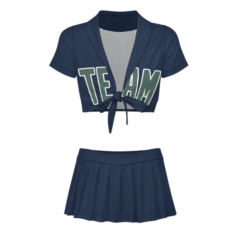 Completo da cheerleader personalizzato blu navy e verde acqua