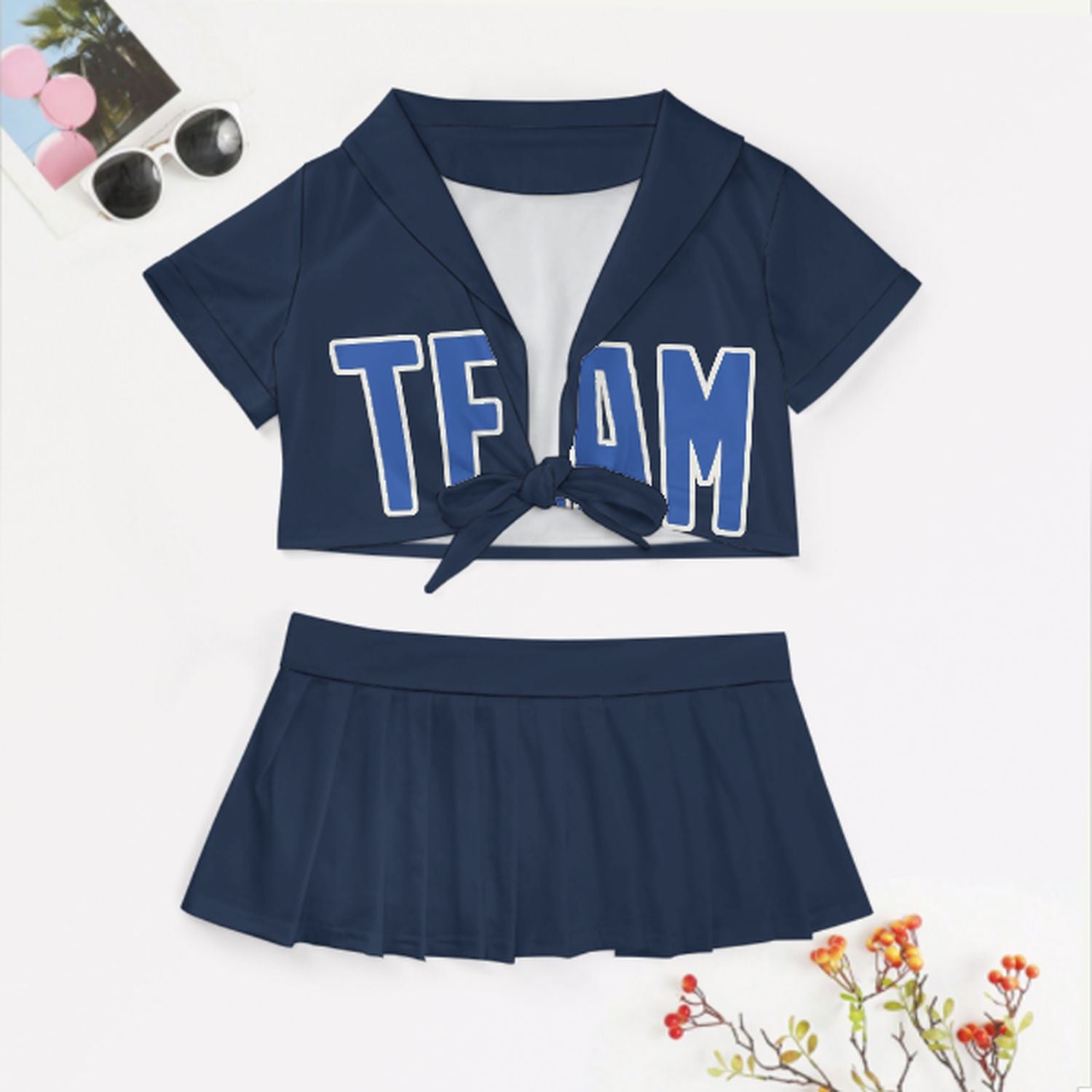 Completo da cheerleader personalizzato blu navy e azzurro cielo