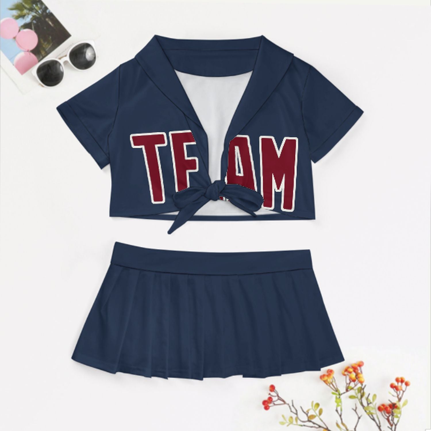 Completo da cheerleader personalizzato blu navy e cremisi