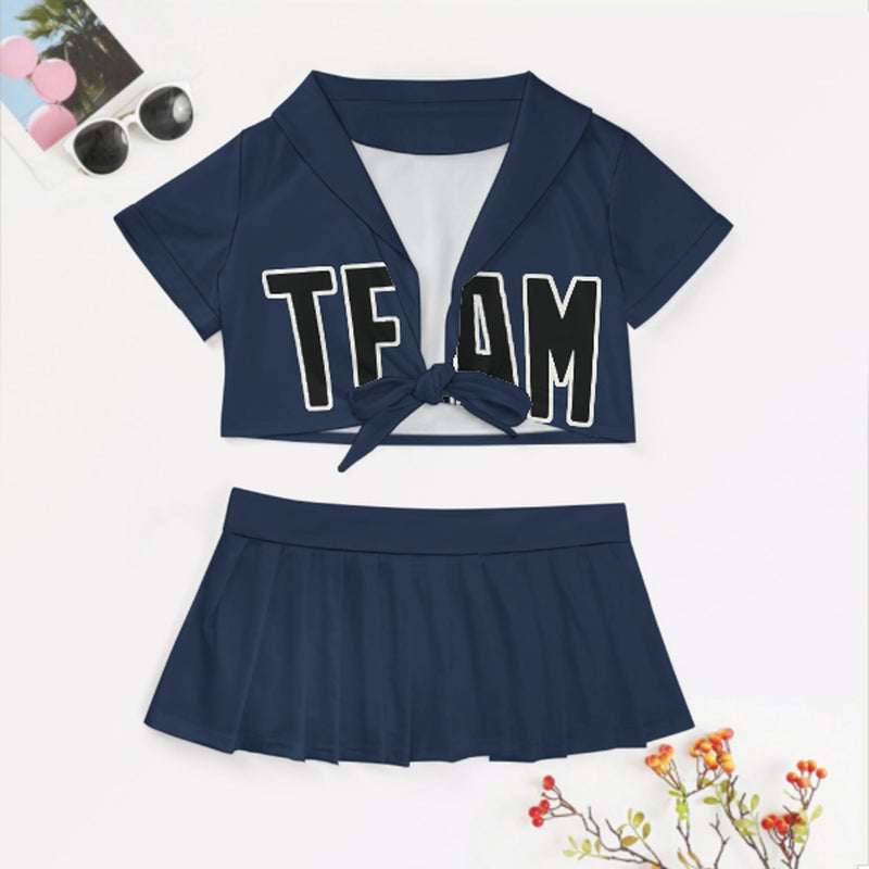 Completo sportivo e femminile da cheerleader in poliestere traspirante con taglio aderente, ideale per spettacoli, feste e regali.