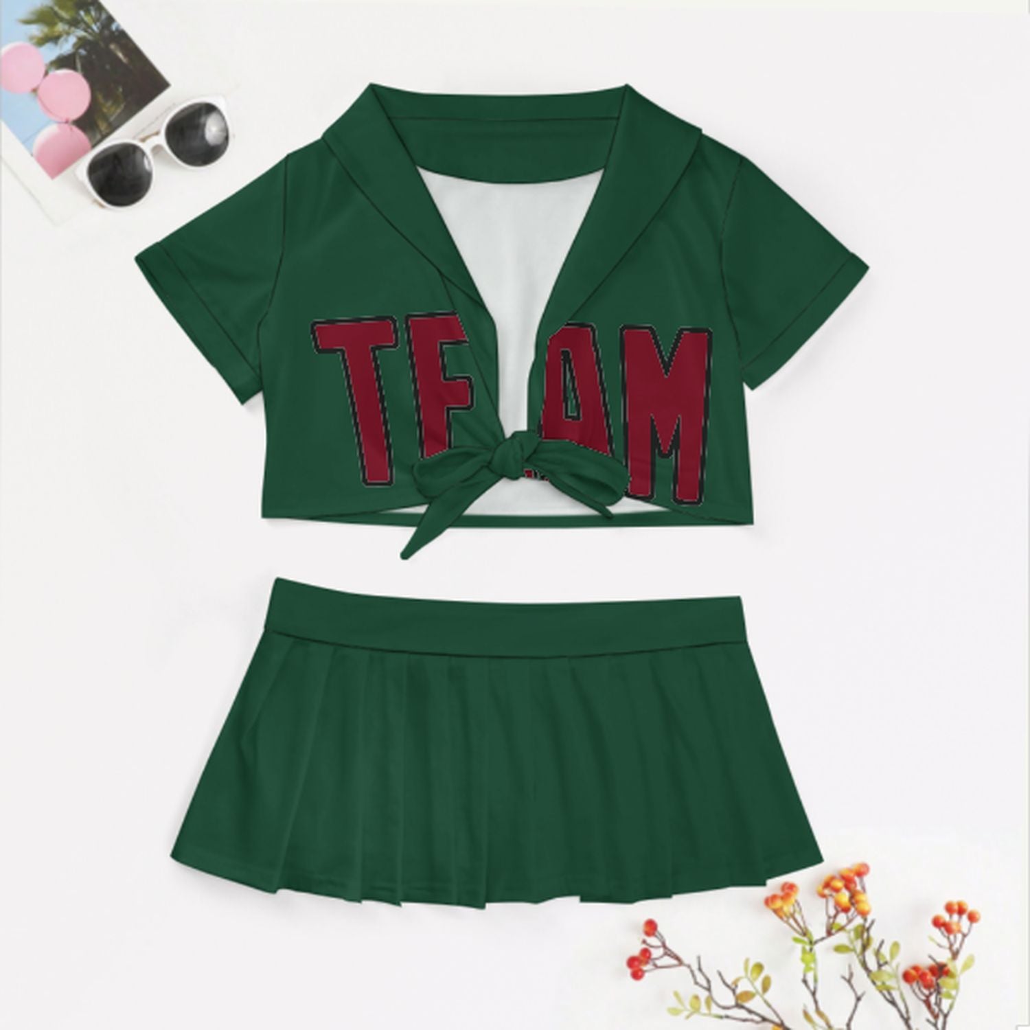 Completo da cheerleader personalizzato verde muschio cremisi