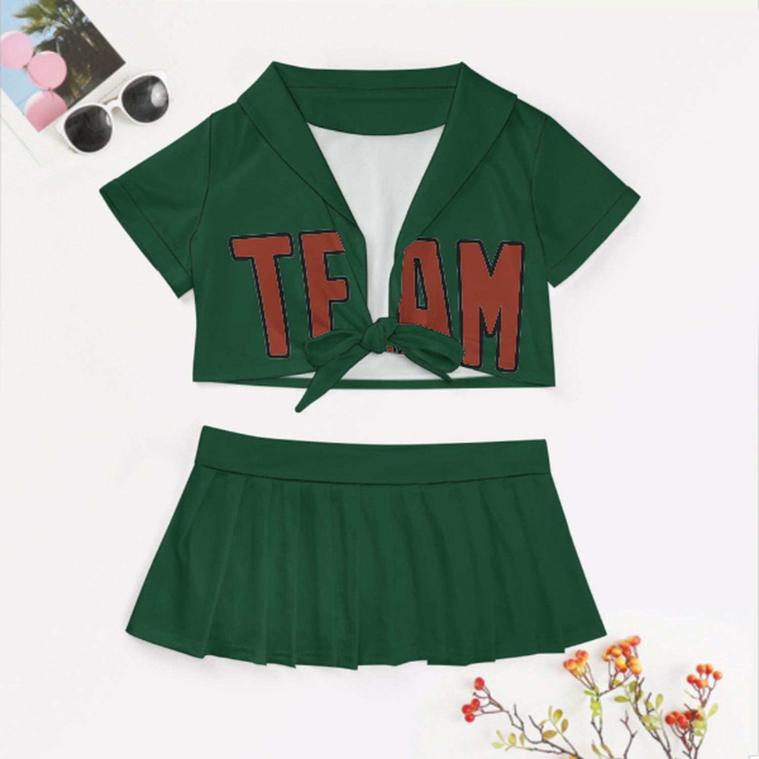 Completo da cheerleader personalizzato verde muschio e rosso corallo