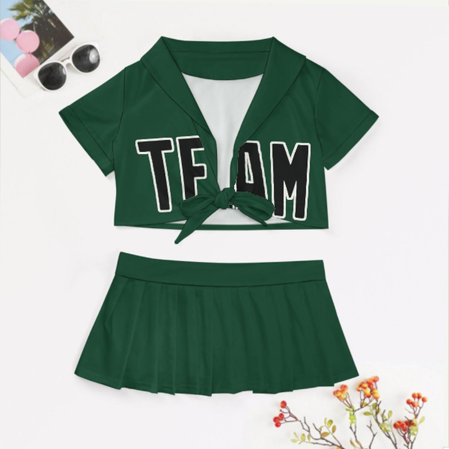 Completo sportivo e femminile da cheerleader in poliestere traspirante con taglio aderente, ideale per spettacoli, feste e regali.