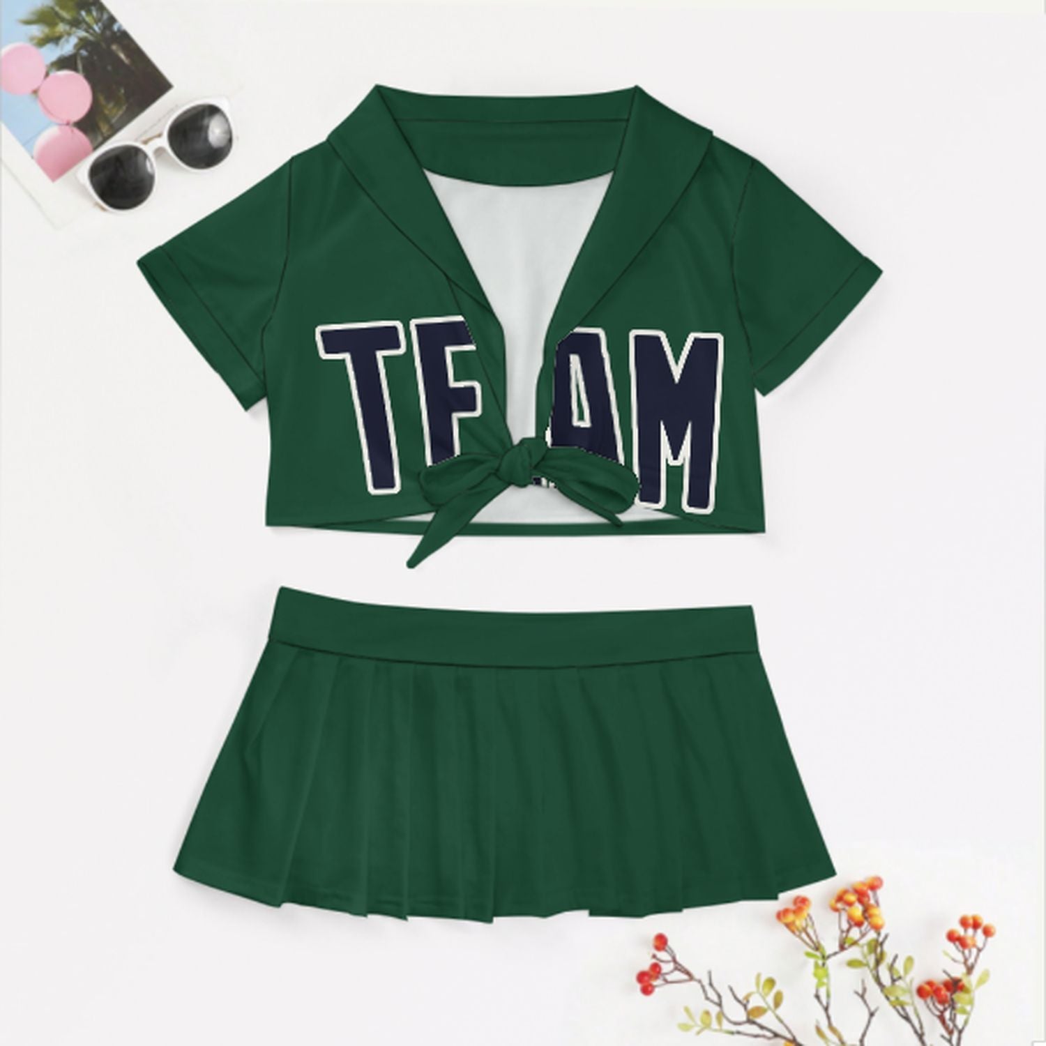 Completo da cheerleader personalizzato verde muschio e blu acciaio