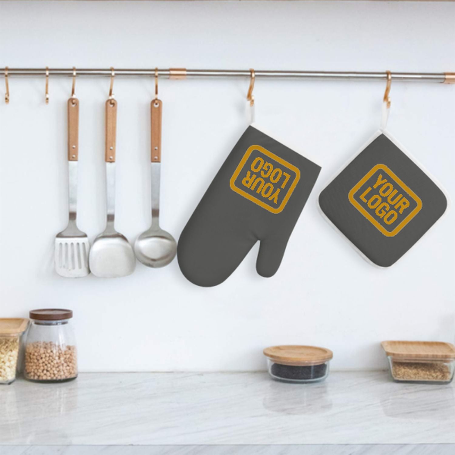 Ein stilvolles, hitzebeständiges 2-teiliges Topfhandschuh-Set aus robustem Polyestergewebe, ideal für Sicherheit und Komfort beim Kochen und Backen.