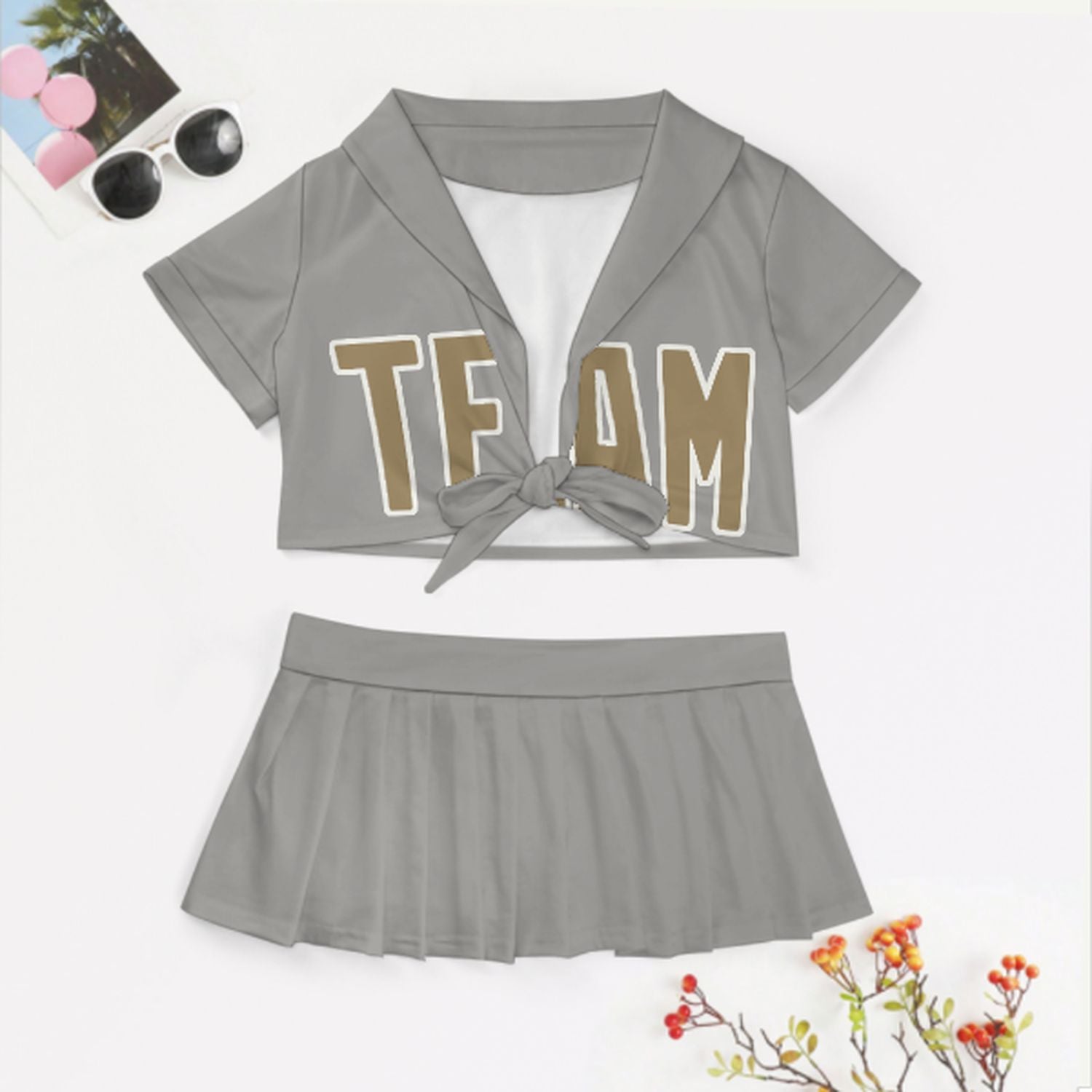 Maßgeschneidertes Grau Hellkhaki Cheerleader Outfit Set