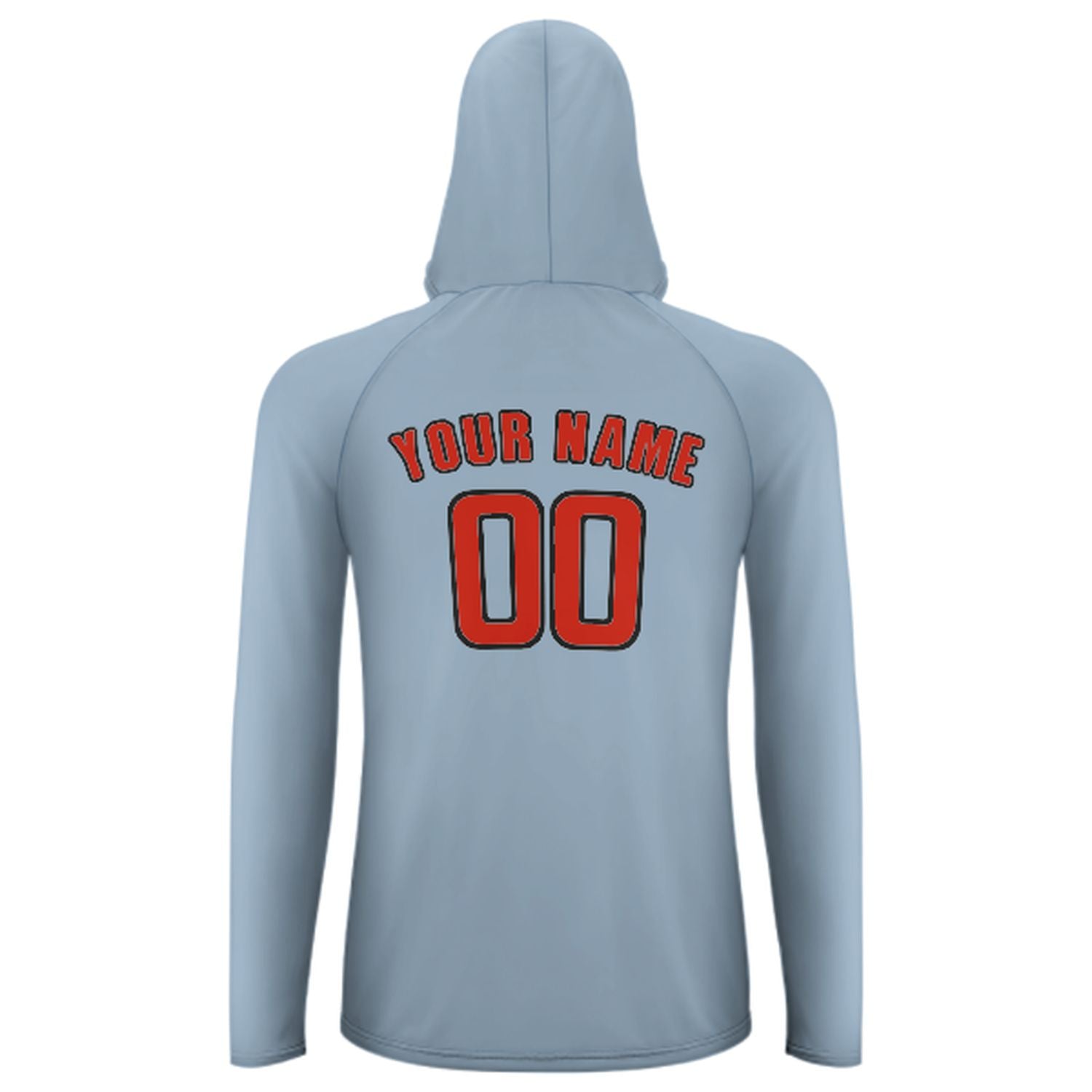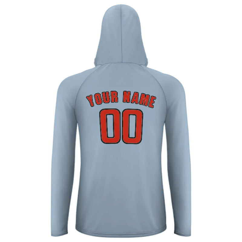 Maßgeschneidertes Hellblau Orangerot UV-Hoodie