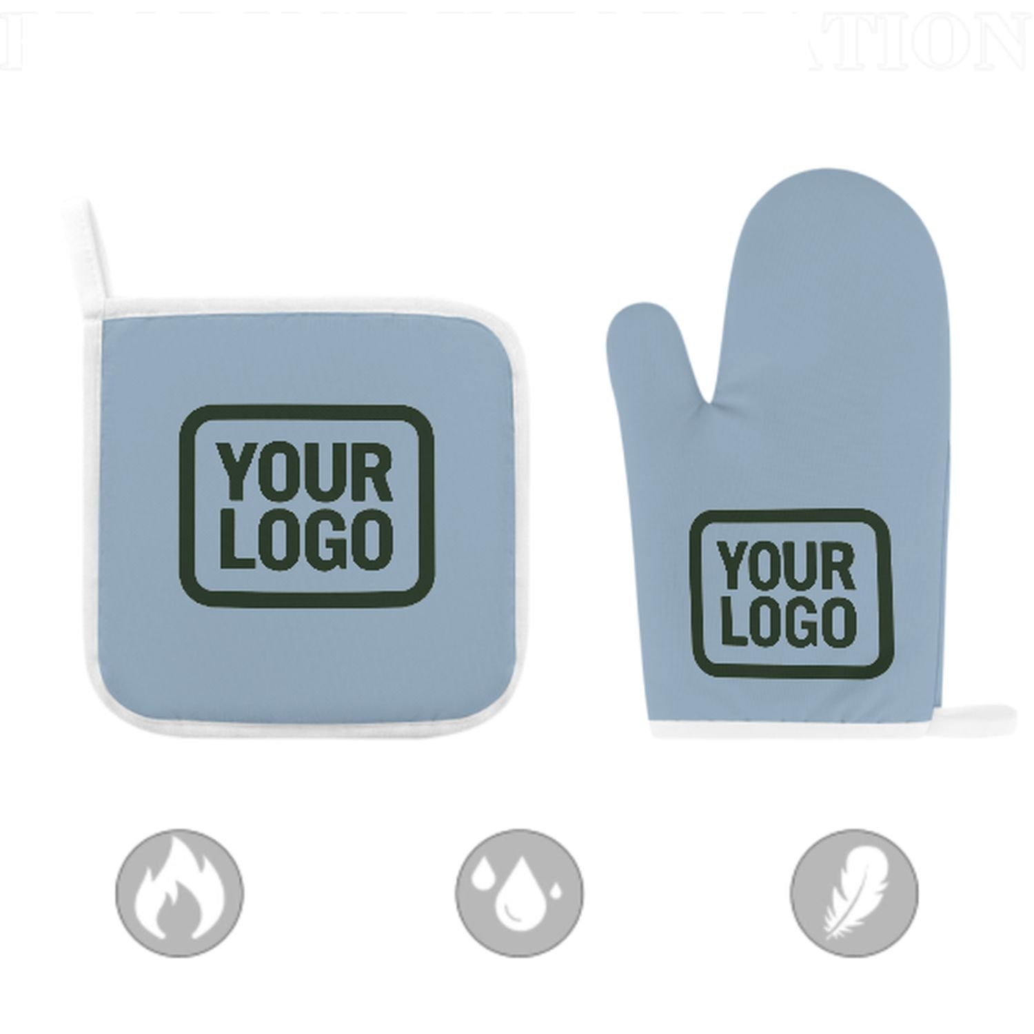 Maßgeschneidertes Hellblau Tannengrün Topfhandschuh Set – 2-teilig
