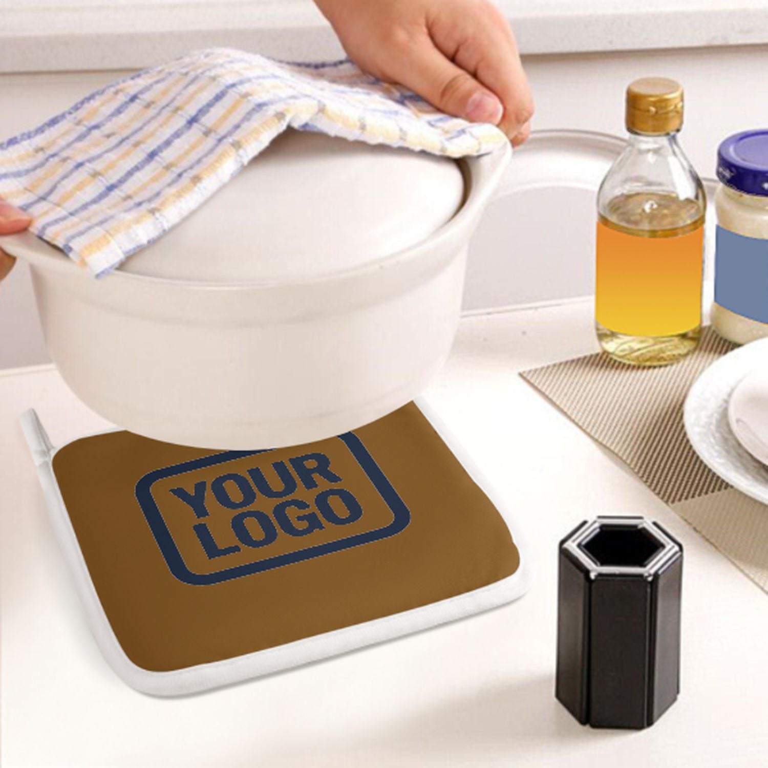 Maßgeschneidertes Khaki Marineblau Topfhandschuh Set – 2-teilig