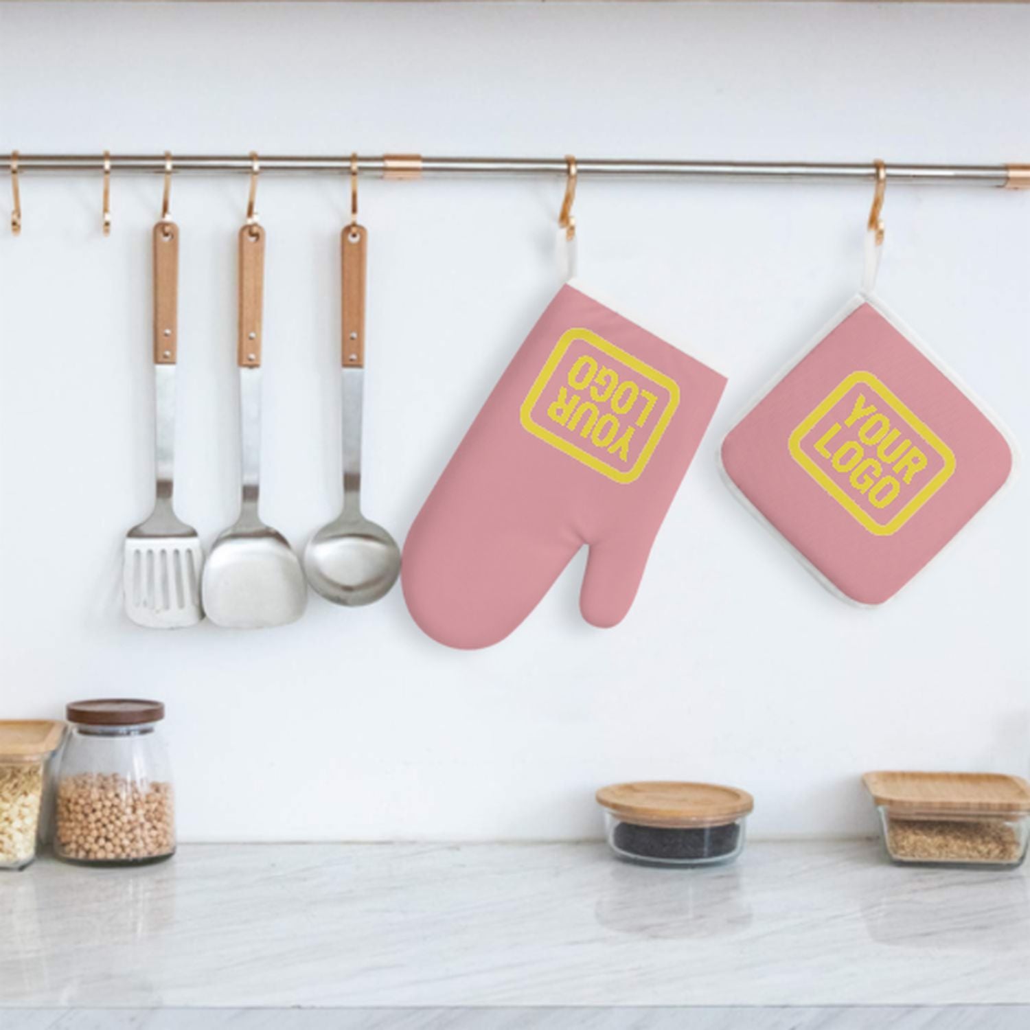 Ein stilvolles, hitzebeständiges 2-teiliges Topfhandschuh-Set aus robustem Polyestergewebe, ideal für Sicherheit und Komfort beim Kochen und Backen.