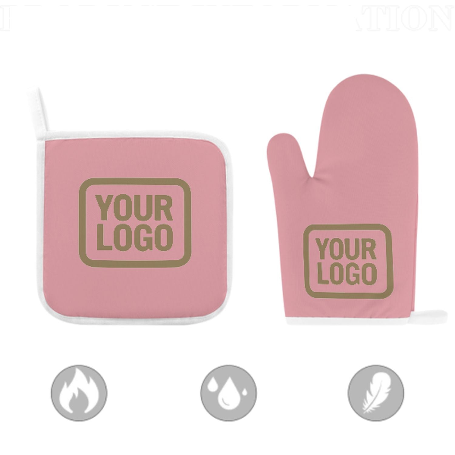 Maßgeschneidertes Rosa Hellkhaki Topfhandschuh Set – 2-teilig
