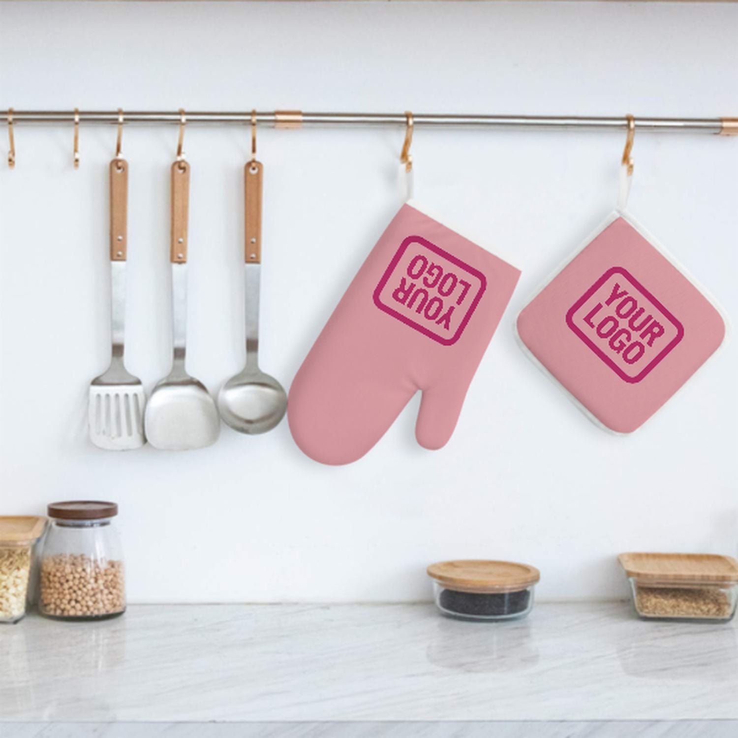 Maßgeschneidertes Rosa Rosarot Topfhandschuh Set – 2-teilig