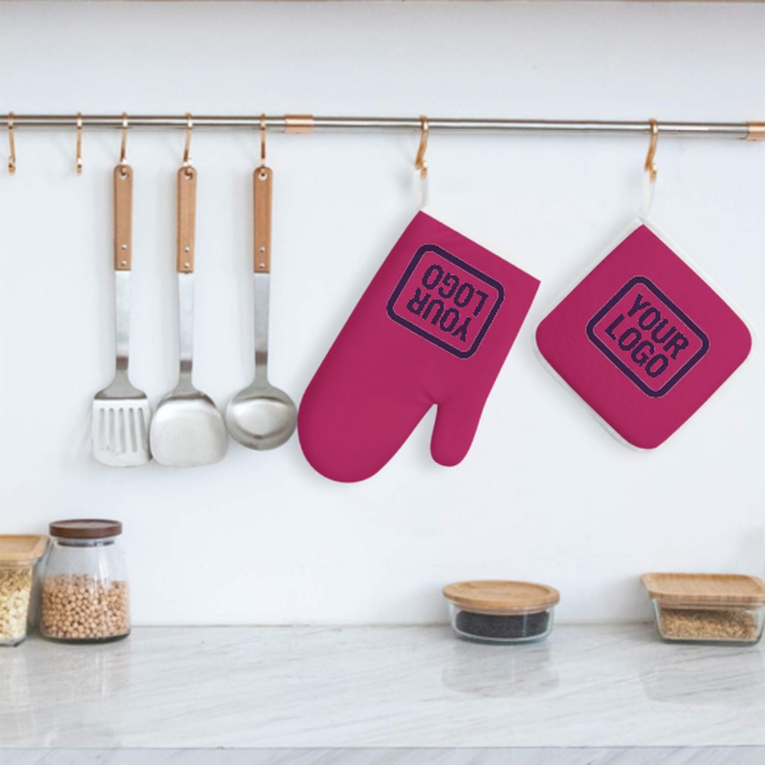 Maßgeschneidertes Rosarot Lila Topfhandschuh Set – 2-teilig