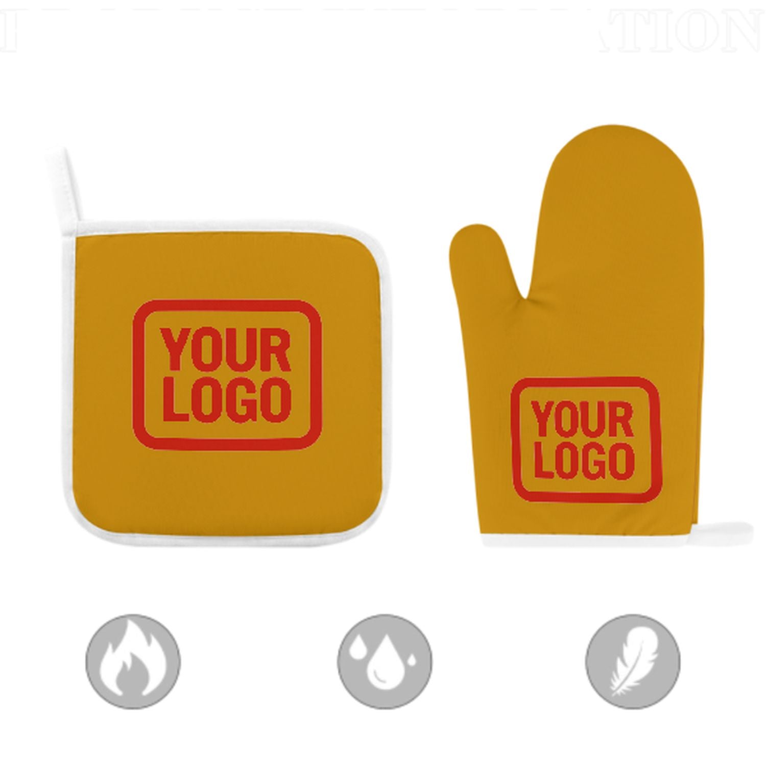 Maßgeschneidertes Gelb Orangerot Topfhandschuh Set – 2-teilig