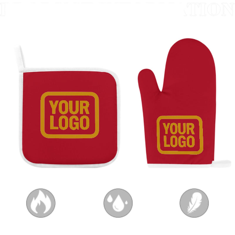 Maßgeschneidertes Rot Gelb Topfhandschuh Set – 2-teilig