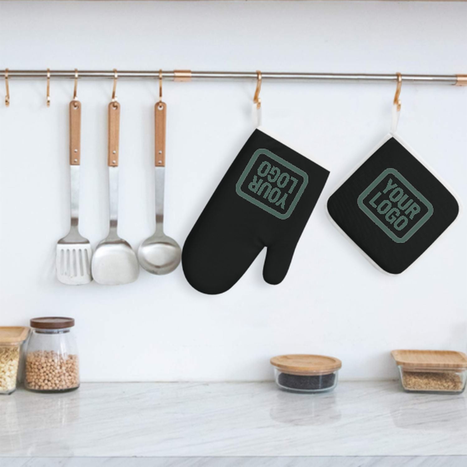 Ein stilvolles, hitzebeständiges 2-teiliges Topfhandschuh-Set aus robustem Polyestergewebe, ideal für Sicherheit und Komfort beim Kochen und Backen.