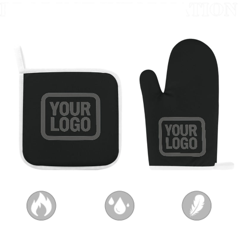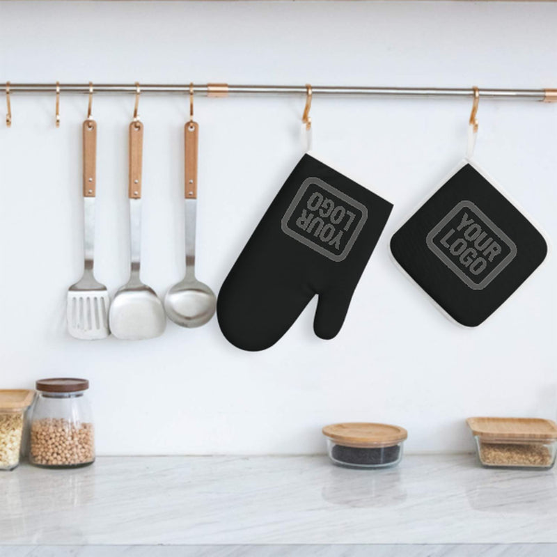 Maßgeschneidertes Schwarz Dunkelgrau Topfhandschuh Set – 2-teilig