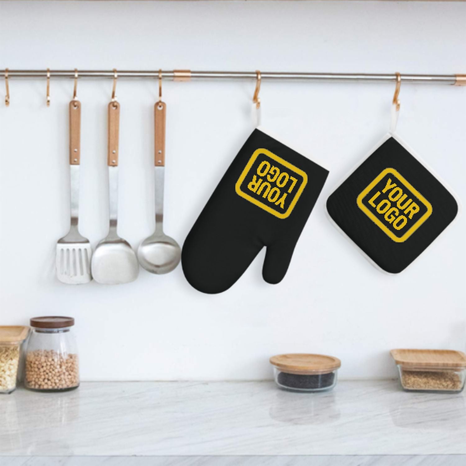 Maßgeschneidertes Schwarz Gold Topfhandschuh Set – 2-teilig