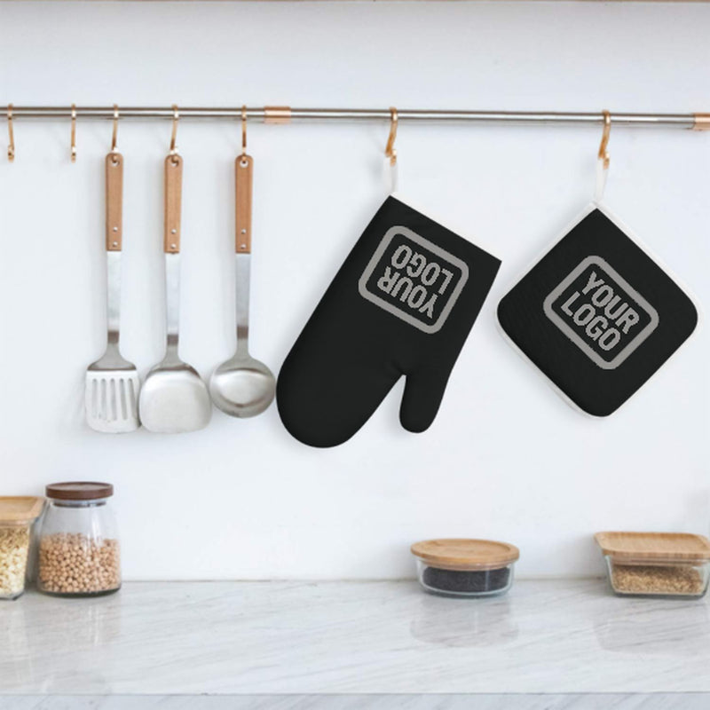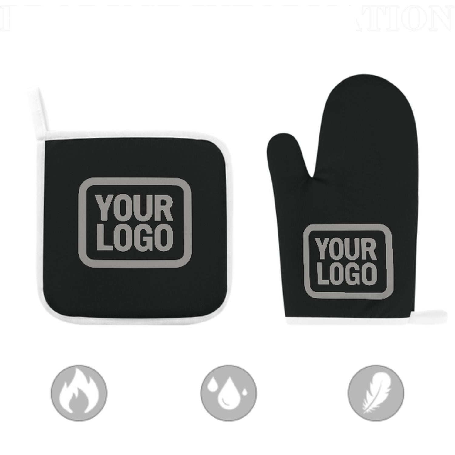 Maßgeschneidertes Schwarz Grau Topfhandschuh Set – 2-teilig