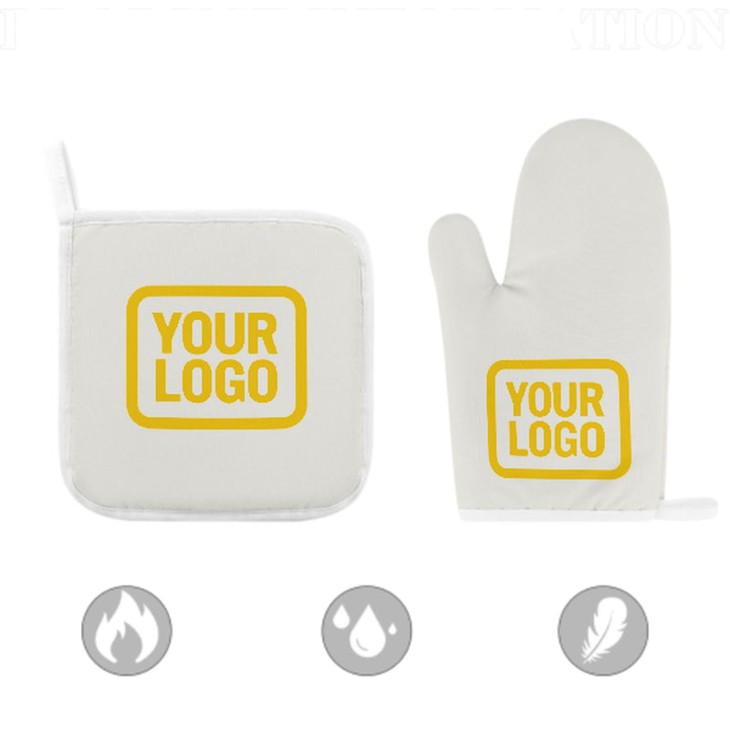 Maßgeschneidertes Weiß Gold Topfhandschuh Set – 2-teilig