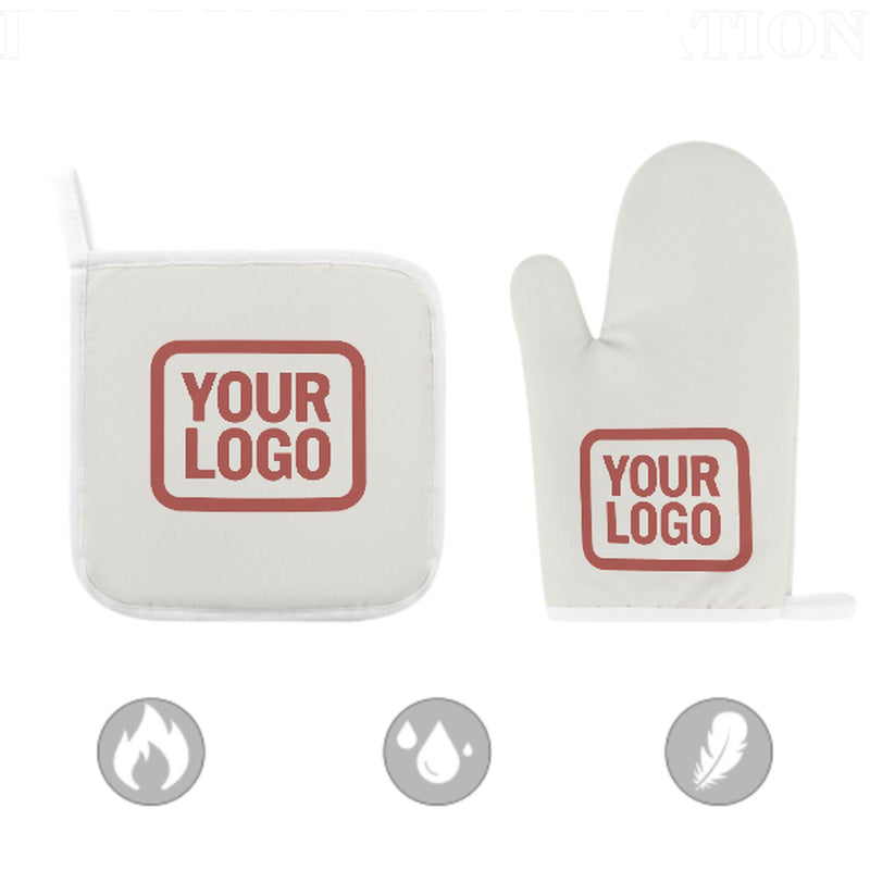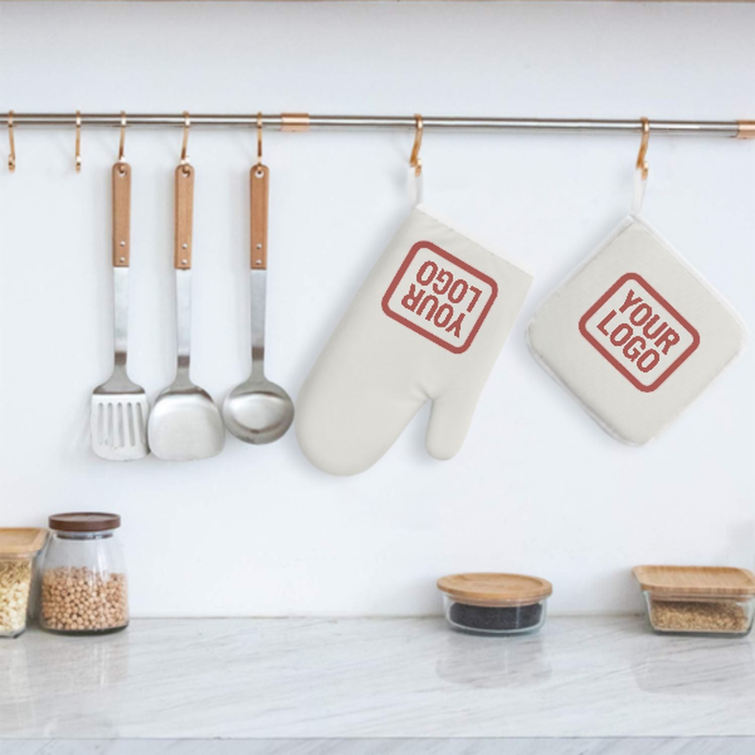 Ein stilvolles, hitzebeständiges 2-teiliges Topfhandschuh-Set aus robustem Polyestergewebe, ideal für Sicherheit und Komfort beim Kochen und Backen.