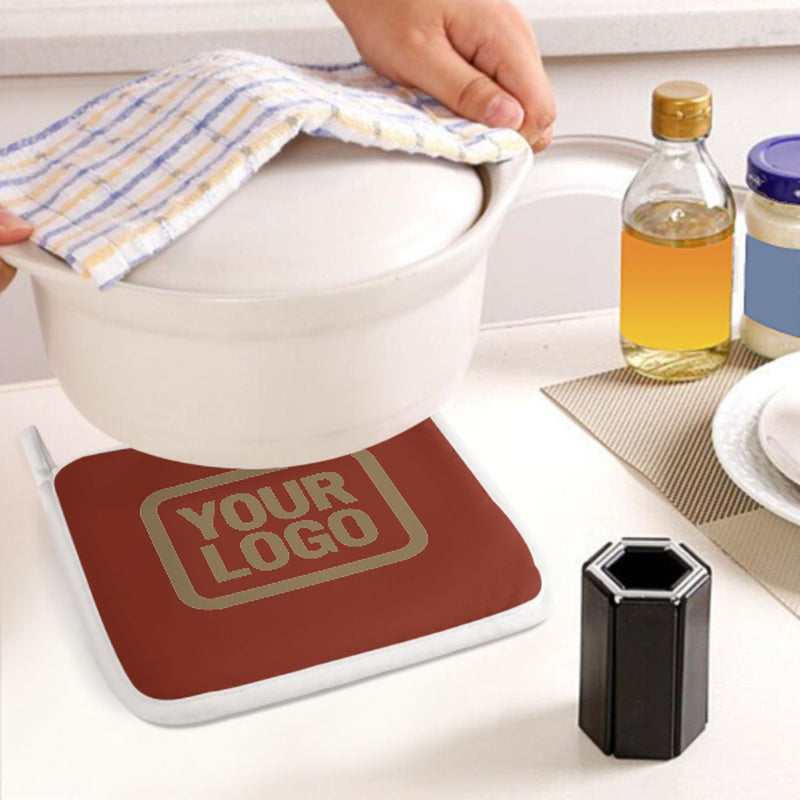Ein stilvolles, hitzebeständiges 2-teiliges Topfhandschuh-Set aus robustem Polyestergewebe, ideal für Sicherheit und Komfort beim Kochen und Backen.