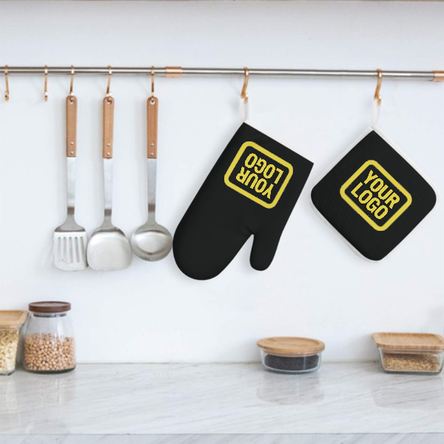Maßgeschneidertes Schwarz Blassgelb Topfhandschuh Set – 2-teilig
