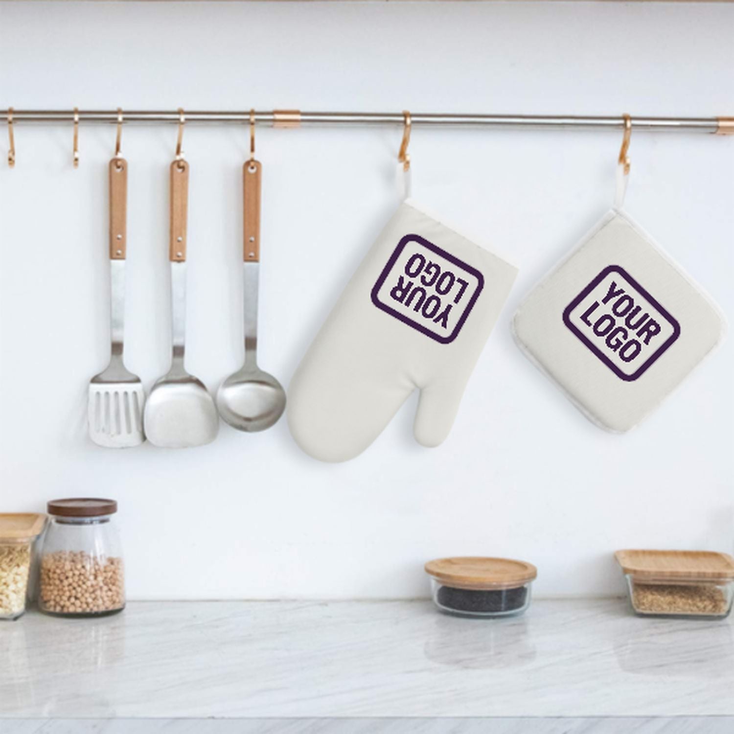 Ein stilvolles, hitzebeständiges 2-teiliges Topfhandschuh-Set aus robustem Polyestergewebe, ideal für Sicherheit und Komfort beim Kochen und Backen.