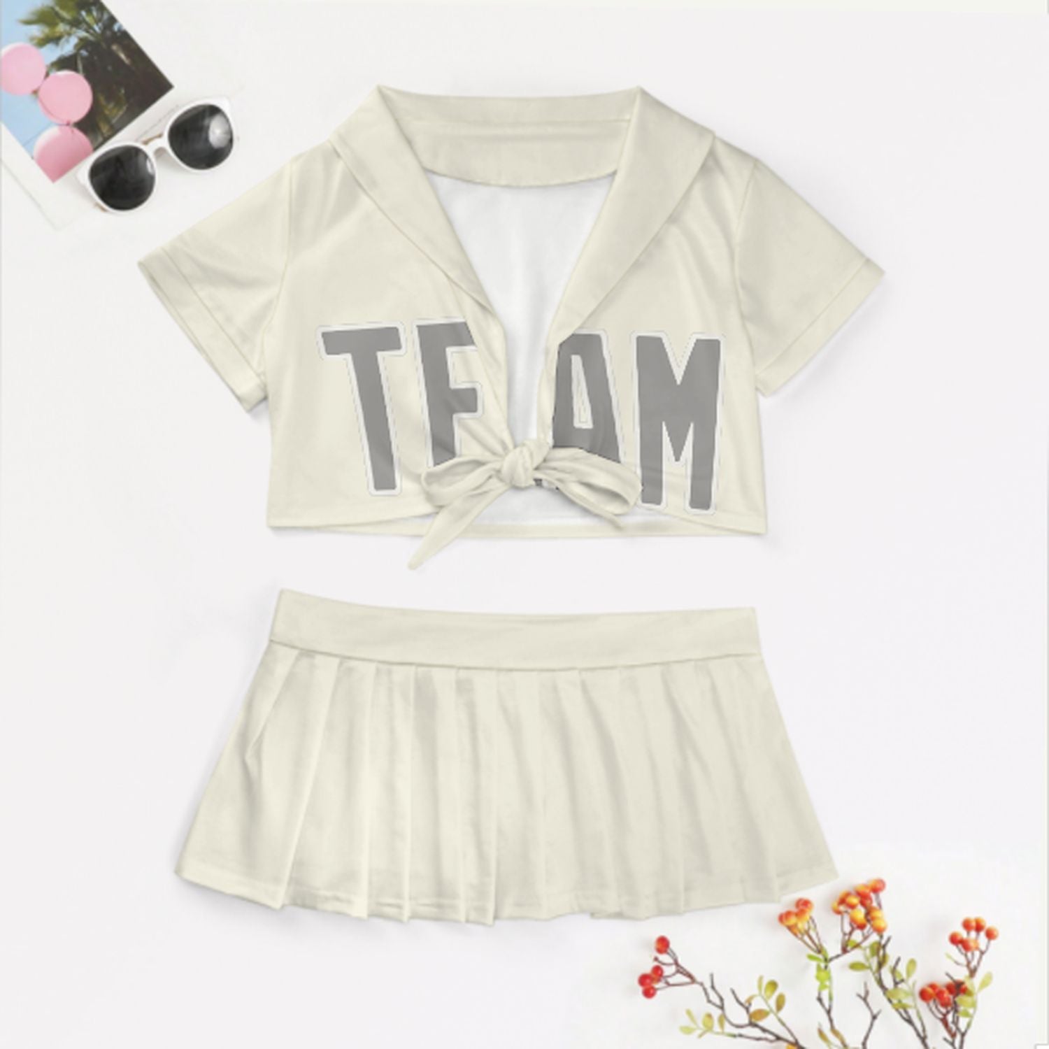 Maßgeschneidertes Beige Grau Cheerleader Outfit Set
