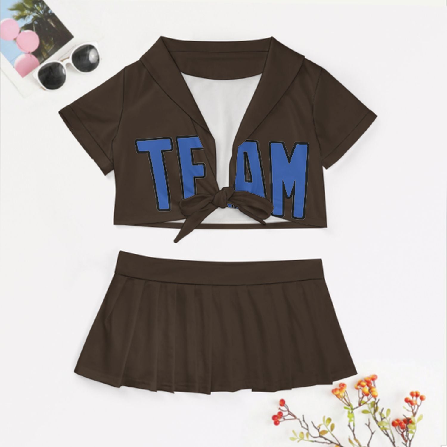 Maßgeschneidertes Braun Himmelblau Cheerleader Outfit Set