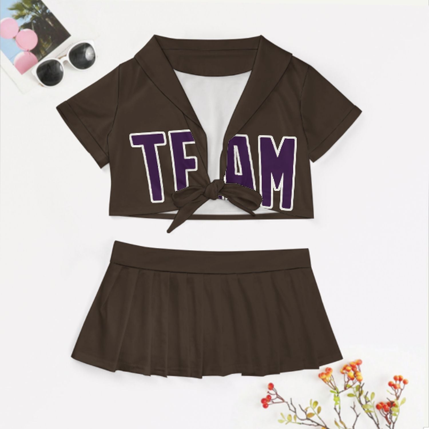 Maßgeschneidertes Braun Lila Cheerleader Outfit Set