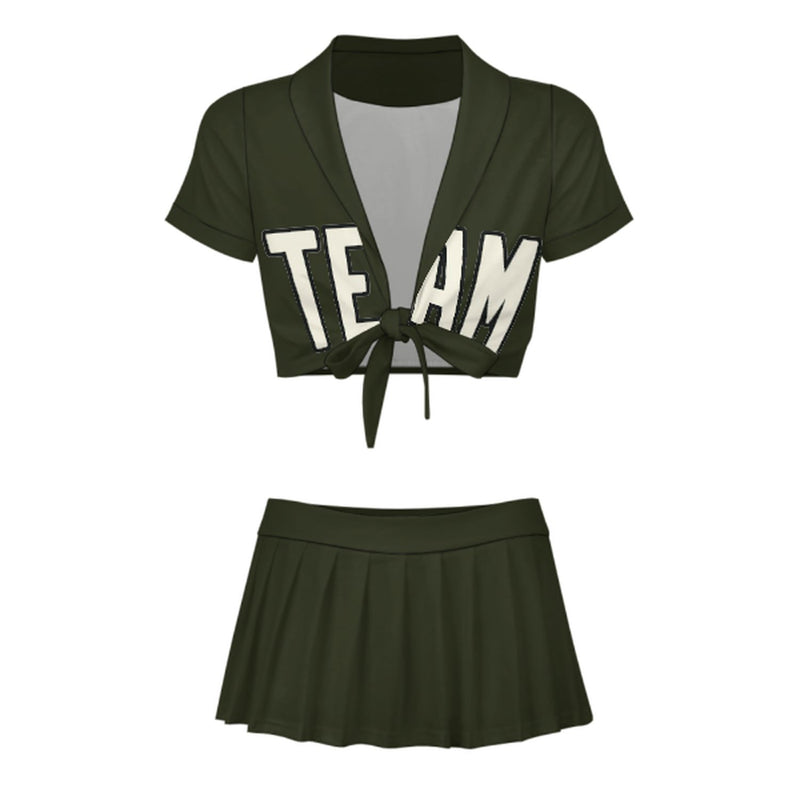 Maßgeschneidertes Dunkles Oliv Beige Cheerleader Outfit Set