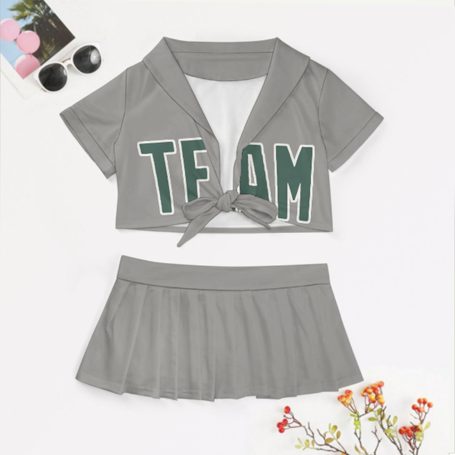 Maßgeschneidertes Grau Blaugrün Cheerleader Outfit Set