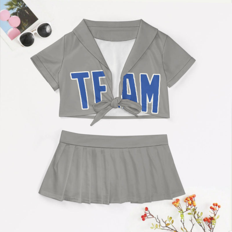 Maßgeschneidertes Grau Himmelblau Cheerleader Outfit Set