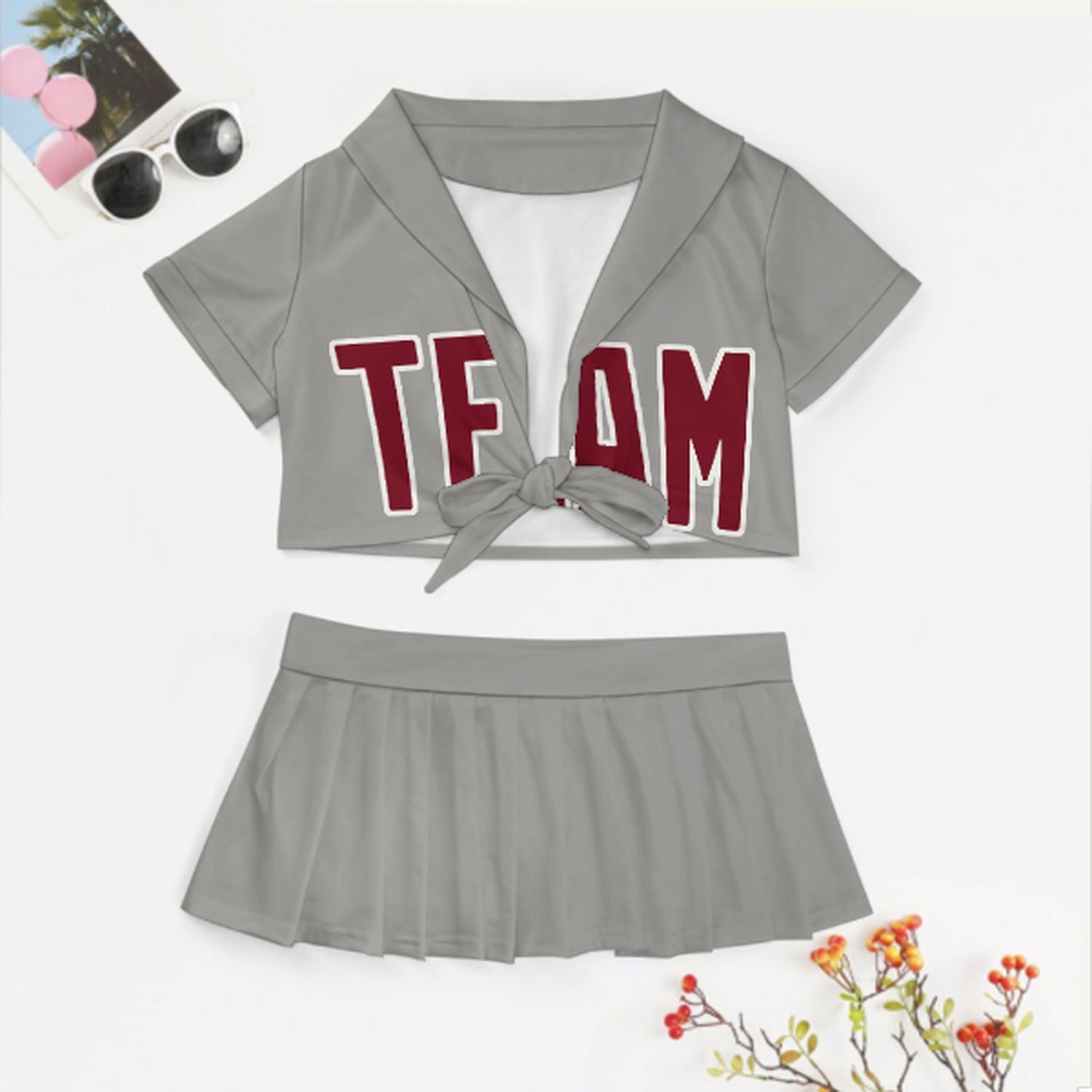 Maßgeschneidertes Grau Karmesinrot Cheerleader Outfit Set