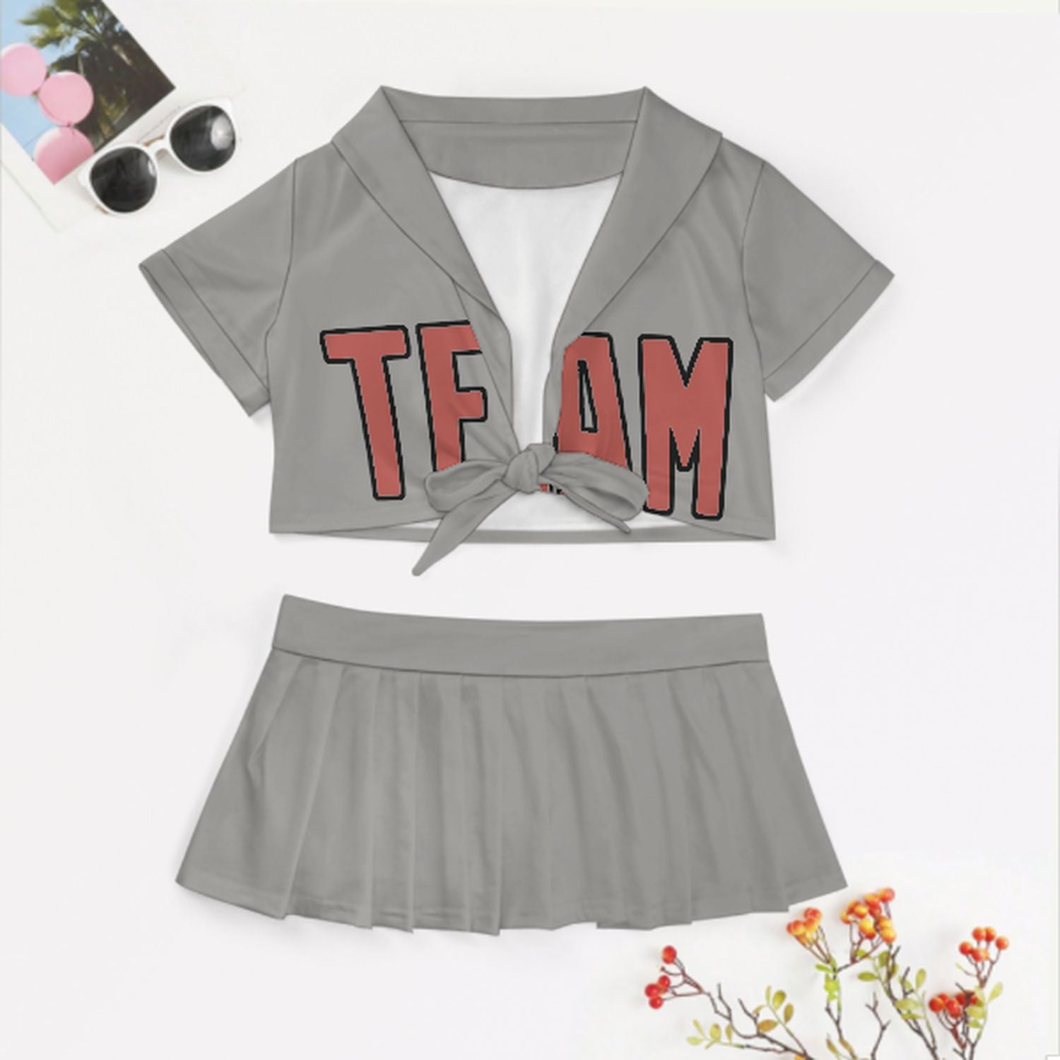 Maßgeschneidertes Grau Kupferrose Cheerleader Outfit Set