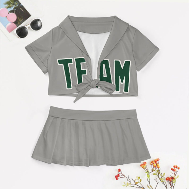 Maßgeschneidertes Grau Moosgrün Cheerleader Outfit Set