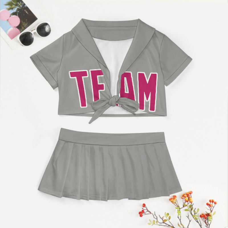 Maßgeschneidertes Grau Rosarot Cheerleader Outfit Set